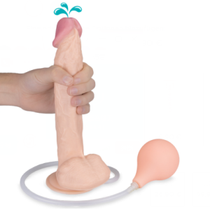 Realistischer Spritz Dildo mit Saugnapf Silikon, Wassersprühfunktion Dildo mit Sperma Spritzfunktion