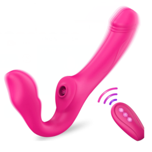Doppeldildo, Paarvibrator für Sie mit 10 Vibrations- und Leckmodus, realistischer straplesser Umschnalldildo