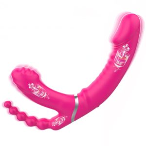 Deluxe Paarvibrator mit Fernbedienung DAMENWAHL, strapless Strap-On mit Vibration, G-Punkt Vibrator & Doppeldildo, aufladbar, von Venize