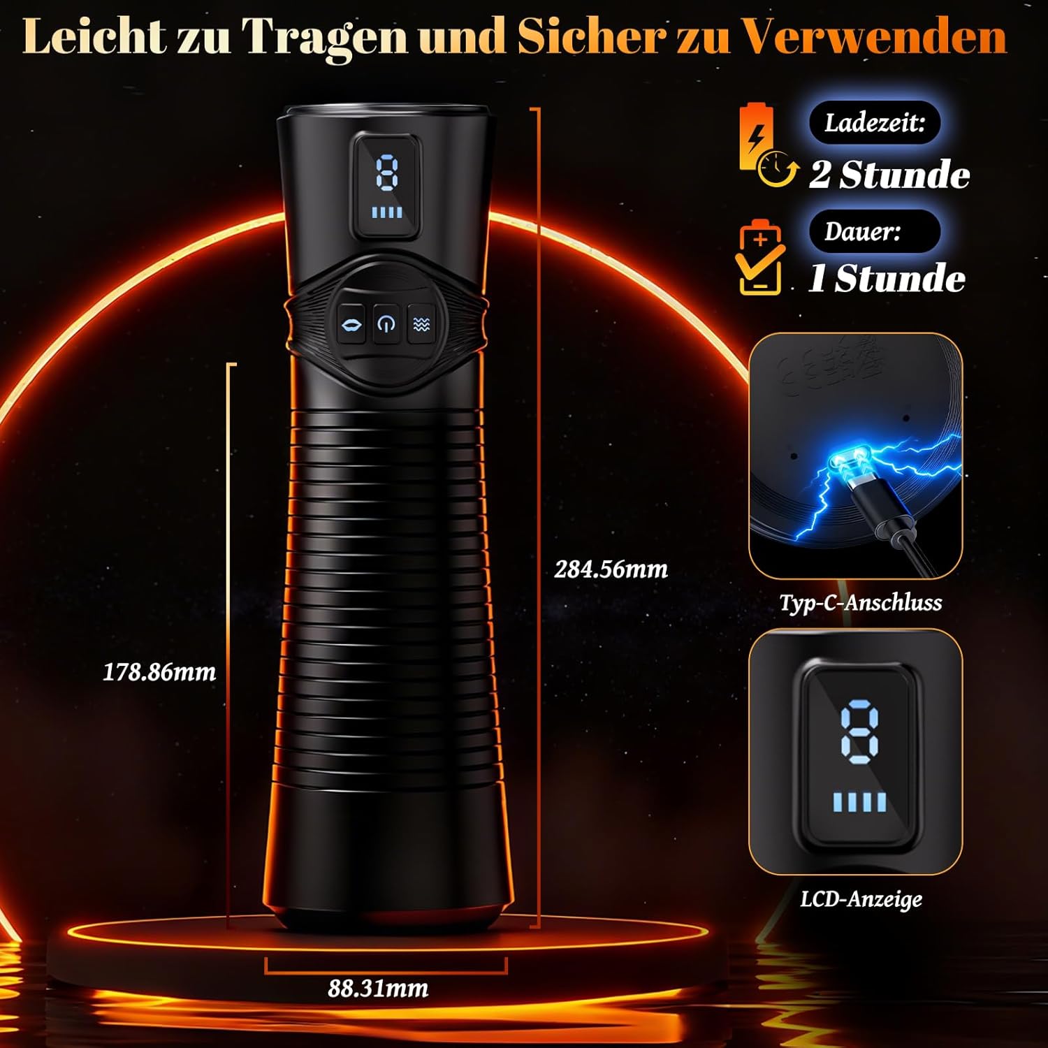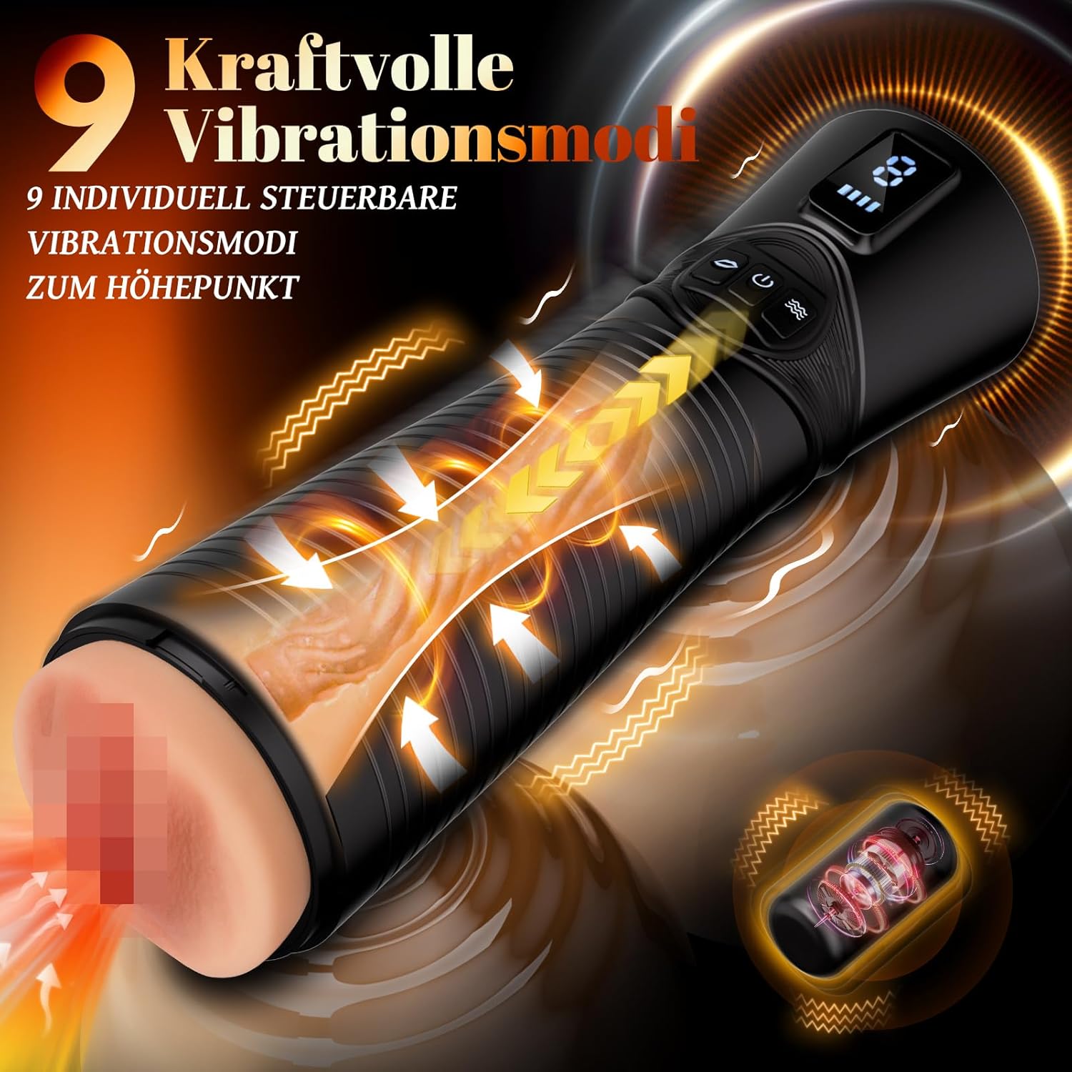 Der masturbator verfügt über 9 Saug- & 9 Vibrationsstufen, die Sie via LCD-Display einfach steuern können – die erste Zahl zeigt den Vibrationsmodus, die zweite den Saugmodus an.Von sanfter Stimulation bis zu intensivem Höhepunkt – passe Tempo und Intensität genau Deinen Bedürfnissen an.