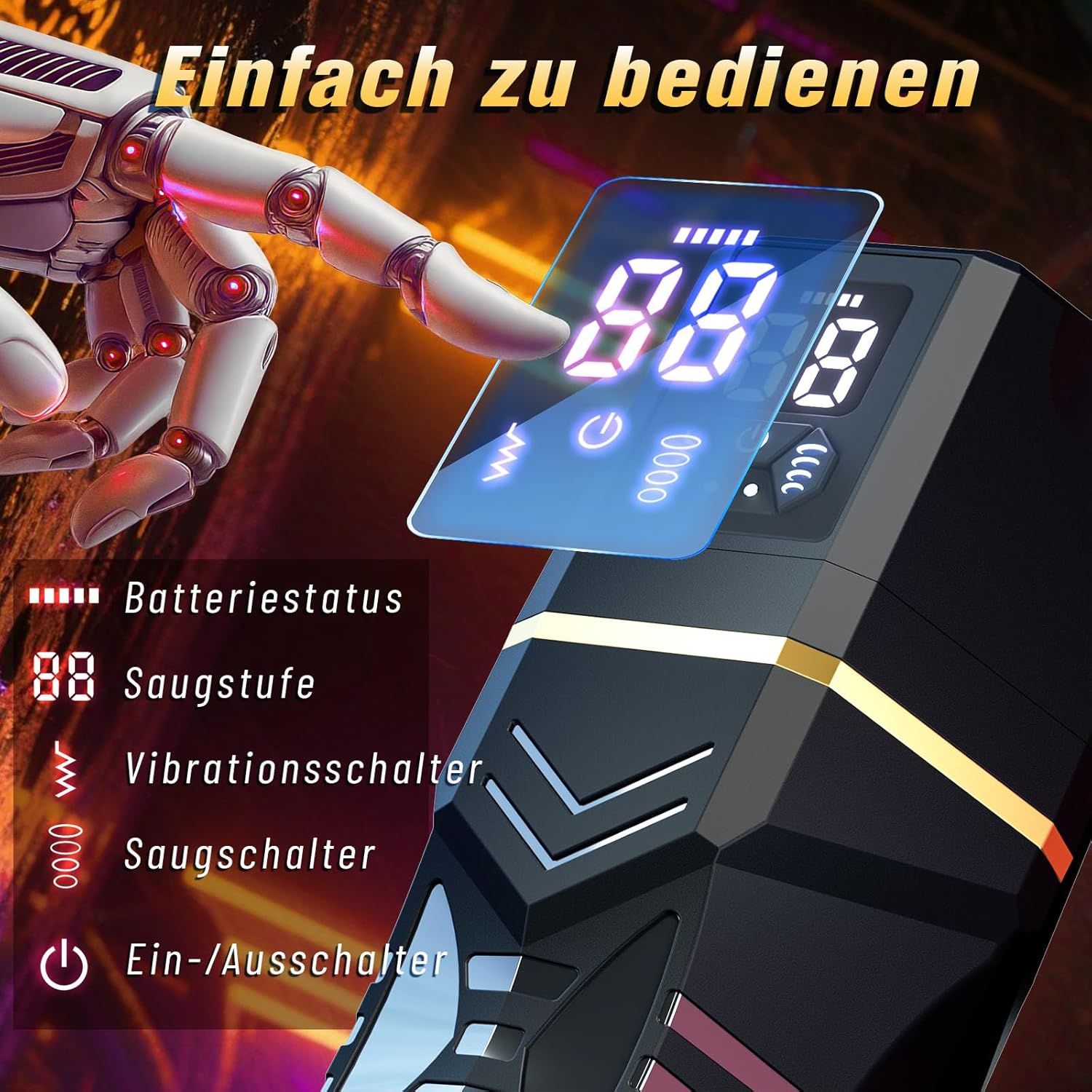 【LCD-Display – Schnelle Kontrolle auf einen Blick】Das eingebaute LCD-Display ermöglicht dir, Saug- und Vibrationsstufen einfach zu sehen und anzupassen, ohne dein Vergnügen zu unterbrechen. Dieser Masturbator für Männer lässt dich smoothes, intensives Vergnügen für ultimative Befriedigung erleben.