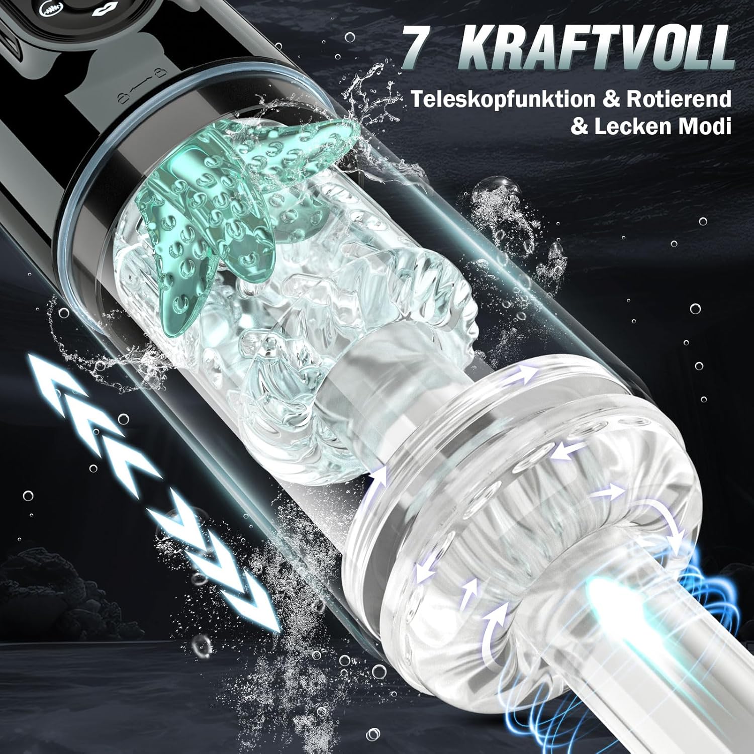 【Neu Aufgerüstete Mehrfachfunktionen Masturbator】 – Dieser neuartige Masturbieren für Männer integriert alle Funktionen der meisten Produkte auf dem Markt, um alle Ihre Bedürfnisse zu erfüllen. Dieses Sex Spielzeug für die Männer bietet nicht nur 7 Modi von Teleskopfunktion & Rotierende, Saugen & Vibrations & Zungenleck Funktionen, sondern sein vollständig wasserdichtes Design ermöglicht es Ihnen auch, abwechselnd heiße und kalte Wassermassagefunktionen zu genießen