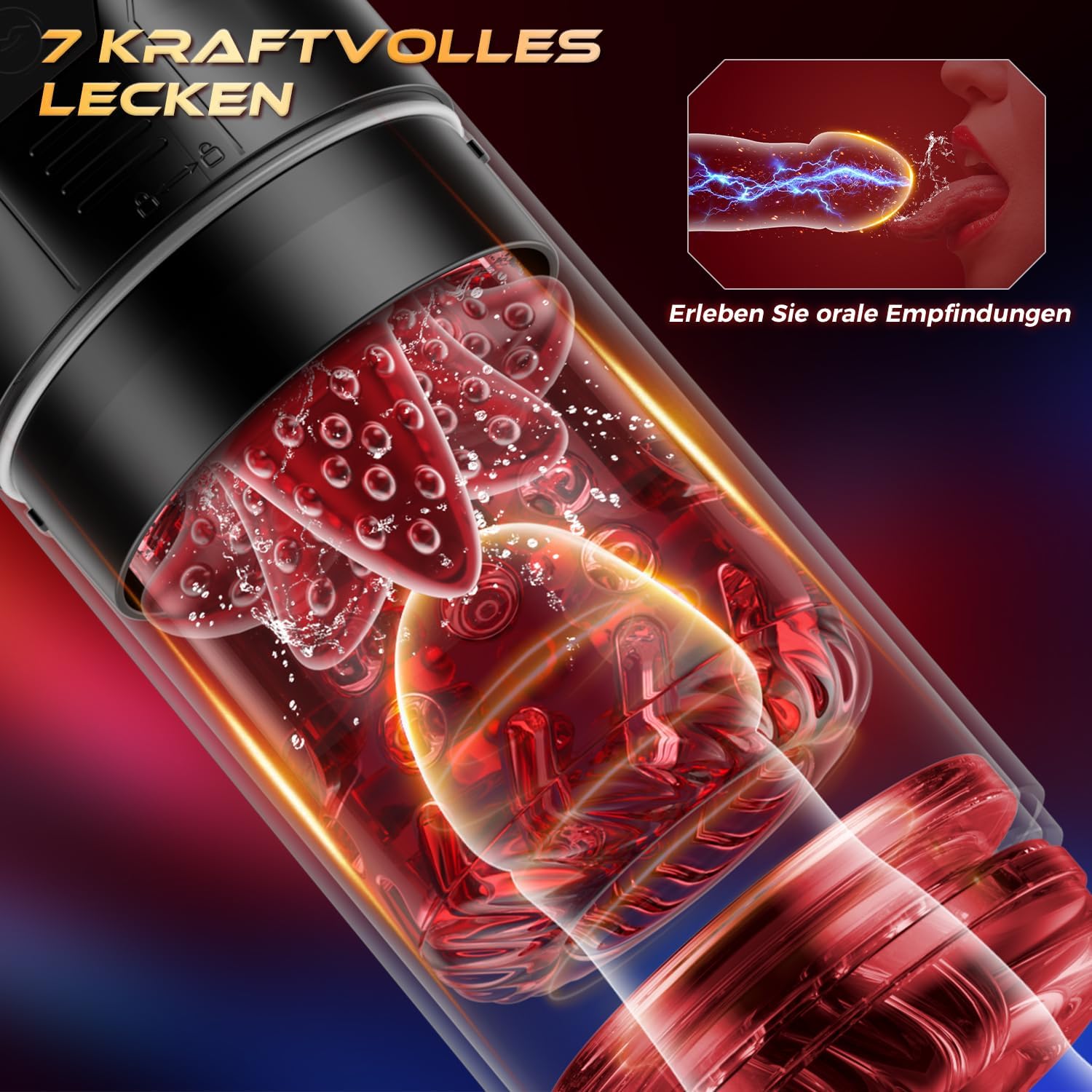 【7 Saugen+ Komfortable Zungenlecken- Deep Throat Blowjob Masturbatoren】Durch 7 Saugmodi mit einer weichen Sleeve wird Ihr Penis fest umgehüllt und wird bei Saugen dicker und größer; an der Spitze des Penis Masssagers gibt es eine weiche Zunge und kann mit Teleskop und Rotation Ihre Eichel und Penis um 360° stimulieren, die Zungenleckmodus ahmt die echte Stimulation von Blowjob und lässt Sie in sein weiches und realistisches Gefühl eintauchen.